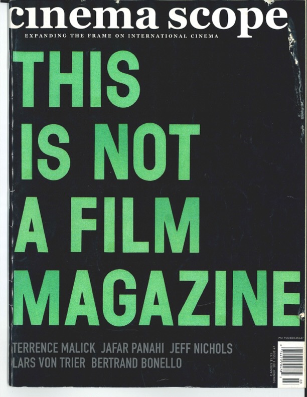 The ol’ movie blog is almost twenty years old, and for that entire time I’ve been reading Cinema Scope magazine. I subscribed after seeing Guy Maddin on the cover of issue 16 and stayed through Maddin’s cover of the final issue 97. It was a huge influence on what I chose to watch, and how I thought about film, and now that it’s gone, I won’t know how to tell which new movies to take seriously.