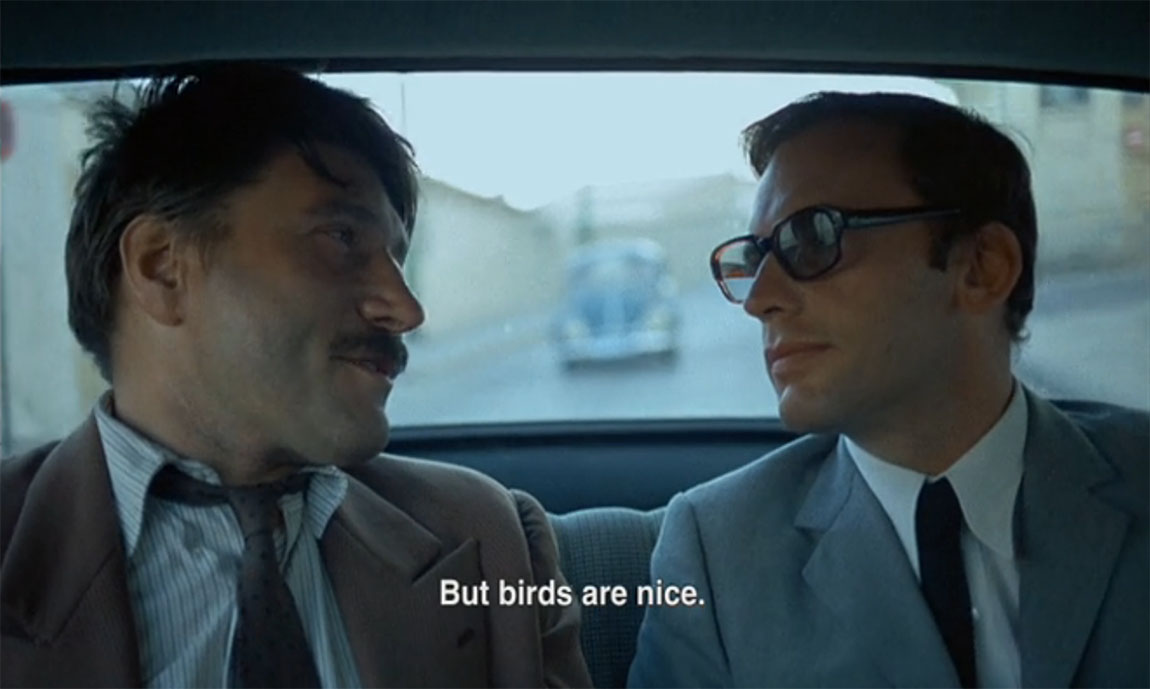 Warok-killer Gerard Darrieu (The Elusive Corporal, Mon Oncle d’Amerique) makes an accurate statement about birds to attorney Trintignant: