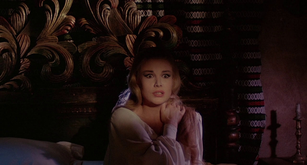 Count Vladimir arrives at an inn where the locals are holed up in fear of wurdulaks: zombies who “yearn for the blood of those they loved most when they were alive.” When Father returns from hunting wurdulaks, it’s clear to the viewer that he has become one, because he’s Boris Karloff and looks insane. Yup, Boris kills his son Massimo Righi (of Danger!! Death Ray and Planet of the Vampires), steals his grandson and rides into the night. Vlad hangs out through all this because he thinks some girl is pretty (“my lips are dead without your kisses”), so he’s as doomed as they are.