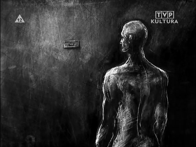 I don’t think it’s all drawing, looks like there are layers of filmed objects in there, though in standard-def it’s hard to tell. Of course there are insects – buzzing flies in every scene – and I recognize the basic Crime (with an axe, killing the pawnbroker and a witness), but the crime is finished with only seven minutes to go in the film, so there’s little Punishment. The killer sits at home feeling bad for a minute before Dumala goes outside to play with animals in the rain. Perhaps a mute witness to the crime kills himself at the end? There are some cool effects – I liked the liquid glimmer of nervous eyes in extreme close-up – but it’s so static it loses my attention repeatedly over the thirty minutes.