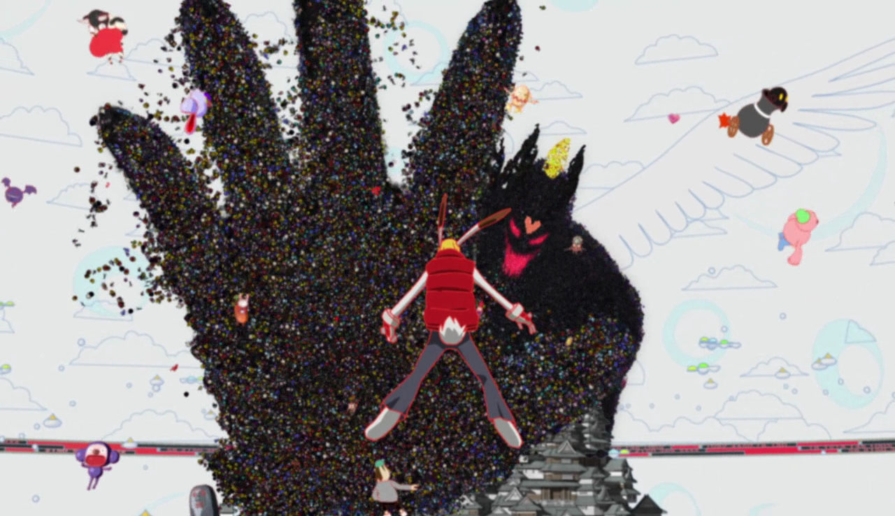 Oz gets super-hacked, which has real-world consequences because, unlike Second Life or Miiverse, people and companies use it for actual business, and traffic signals and emergency services can be accessed through it. After the family’s beloved grandma dies, they pool their real and online skills to stop the Oz hacker, with some great digital swarm animation along the way.
