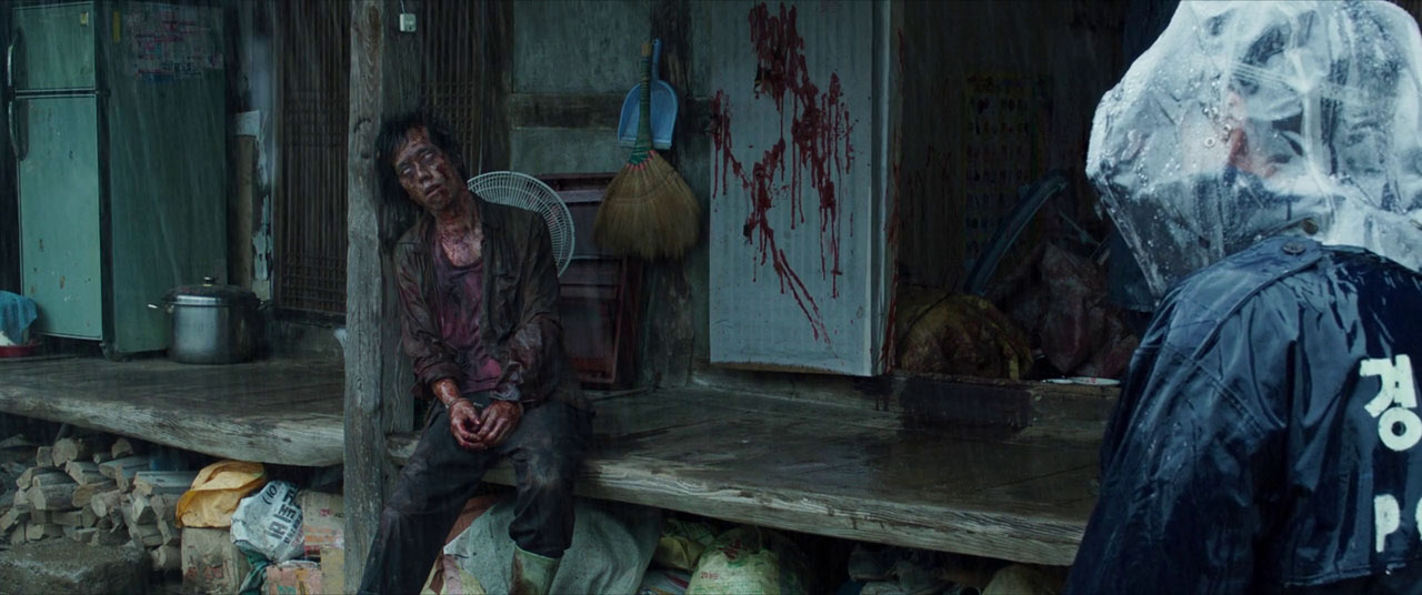 Jong-gu and his partner torment a Japanese man who recently moved in (Jun Kunimura of Chaos, Audition and Kill Bill), illegally searching and destroying his property. When the Japanese man’s dog is killed and he’s chased almost to death through the woods I started to feel bad for him, but then again he’s got a photo wall of the recent killers and victims at home, and turns out to be an evil ghost. There’s a mysterious woman who may also be a ghost, a showy shaman (Hwang Jung-min of A Bittersweet Life), naked cannibals and blood-eyed zombies, and the police all seem outmatched. Oh, and someone gets struck by lightning. I’m not always sure which parts were plot twists, and which parts were just me not being able to follow where the horror is supposed to be coming from now.