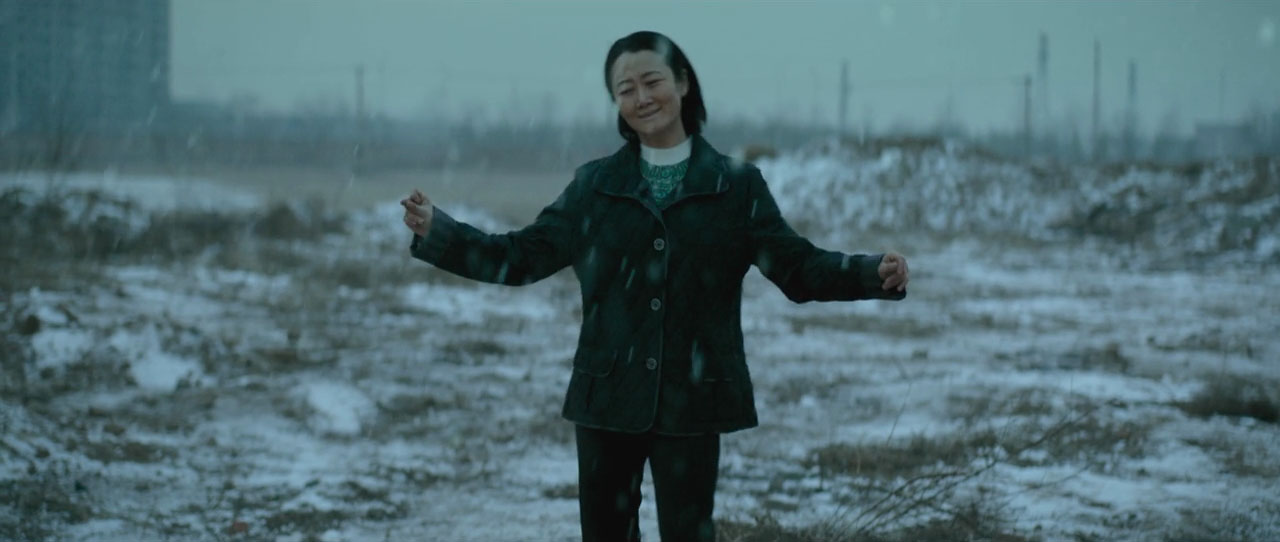 2025: Daole enlists his university English teacher (Sylvia Chang, the boss in Office) to translate conversations with his dad, now a gun dealer, then to Katy’s chagrin, Daole starts sleeping with the teacher. He thinks about visiting his mom, decides not to. Back in China, Mom dances alone in the snow.