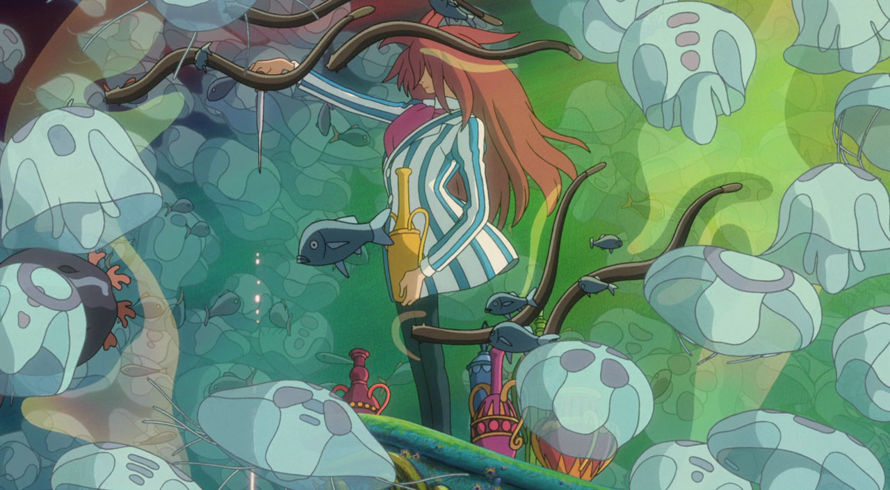 I thought I heard that this was the kid-friendliest of the post-Mononoke Ghibli movies, and maybe so, but it’s also one of the most unexpectedly bizarre. A magic fish-princess flees her underwater bubble-hatted environmentalist mad-scientist Liam Neeson-sounding dad and befriends a five-year-old boy, turning herself human to stay with him on land during a major flood.