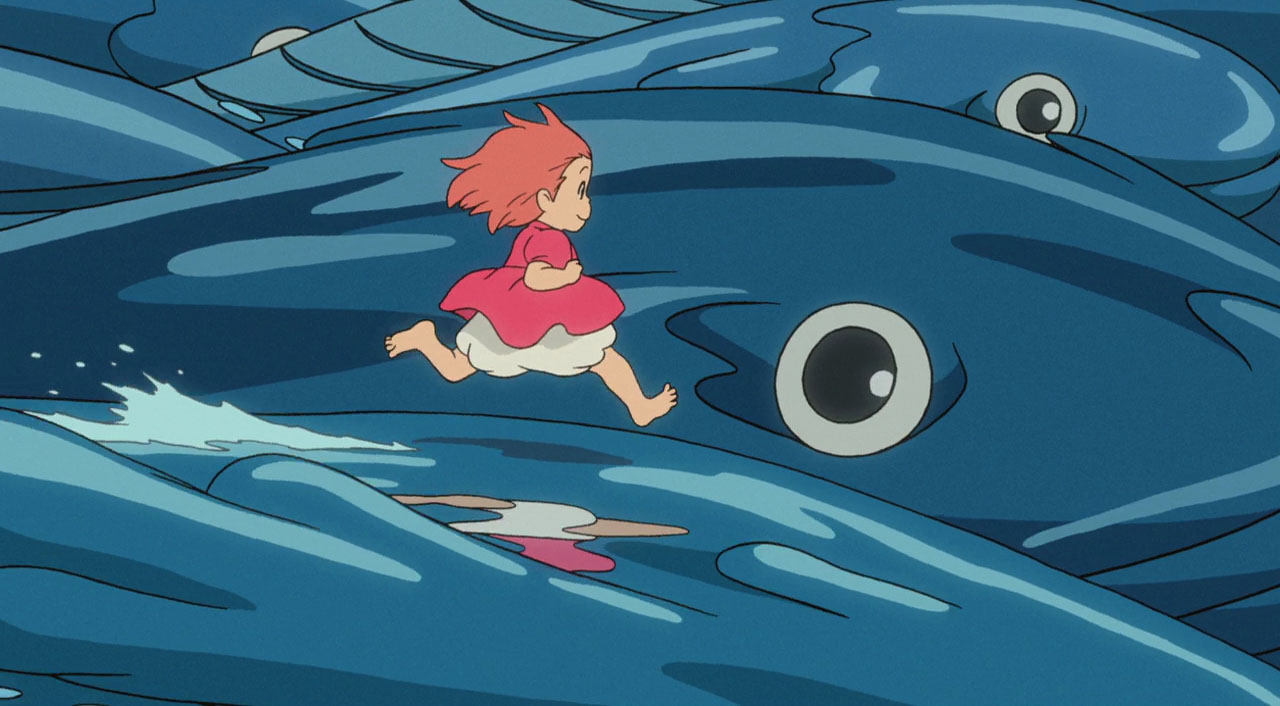 Ponyo running on watery waves of blue fishes is some magical animation: