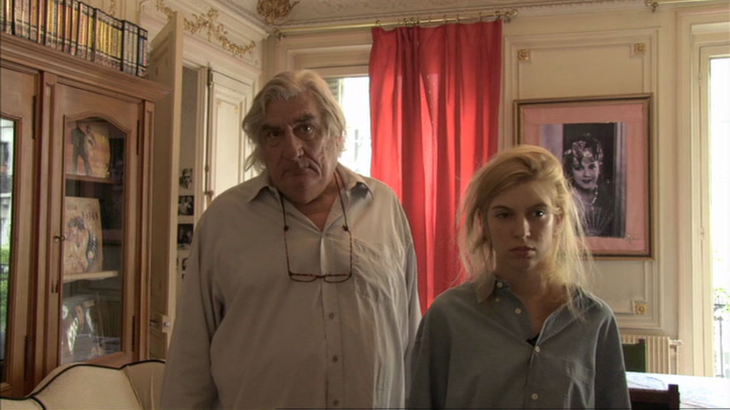Dora tests Michel, suspicious of his intentions. For his part, he seems honestly enthused to have somebody to pay attention to, after living alone for three decades, acting like she’s a long-lost daughter home for a visit. She moves in and helps with his book “about the importance of delusion in our lives”. Then he proposes they marry, so she can inherit his apartment tax-free (there’s a Freud paperback in the movie’s second shot). In the end, the book is finished and he’s killed by a thief – I think with the inheritance issue unresolved.