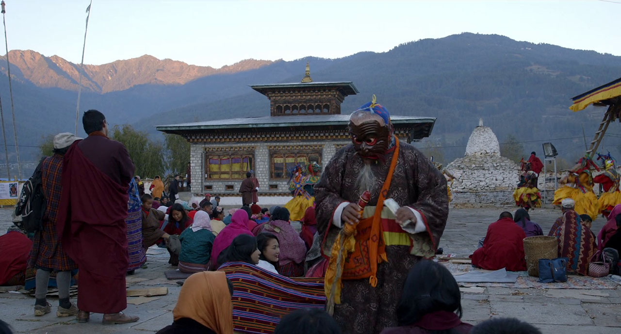 Dad is a goofball monk, doing traditional dances and blessing people (for money) with colorful phalluses. He tells Gyembo that he wants him to be happy, and his future is his own decision, and he doesn’t have to become a monk, but if he doesn’t, the tradition held by their family for untold generations will come to a crashing end and they’ll lose the monastery and all will be lost, but no pressure, make your own decisions. His repetitive lectures even become a joke within the movie as one scene shows Gyembo falling asleep while his dad rambles on, but the joke doesn’t make his nagging any easier to take. The mountainous scenery and colorful festivities are lovely.