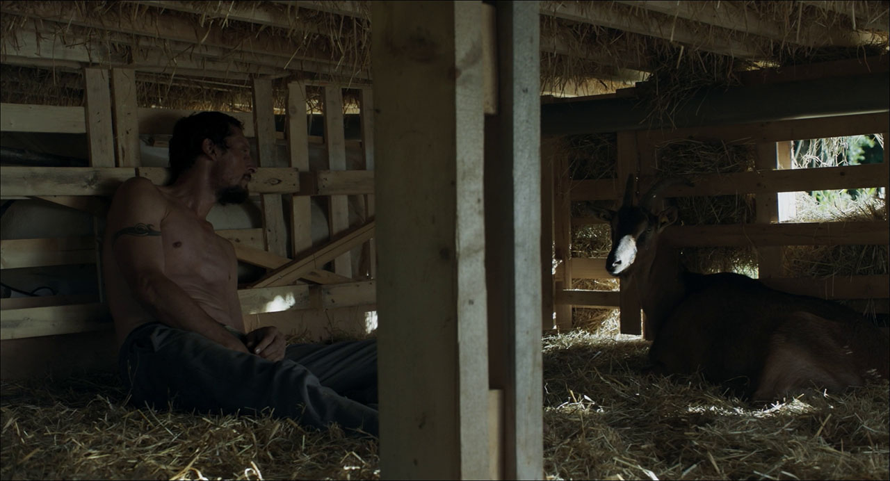 In cinematic terms, Köhler’s treatment of Armin’s survival is highly unique in that he solves almost all of his major crises in an undefined but clearly substantial temporal ellipsis. Following the time gap, Köhler gives us a completely transformed Armin. In a nearly silent second act, we see that Armin has lost weight, become a skilled horseman, and, most astonishingly, built … a deluxe home with running water, solar panels, a menagerie of useful farm animals, and most importantly, fully reliable shelter from the elements.