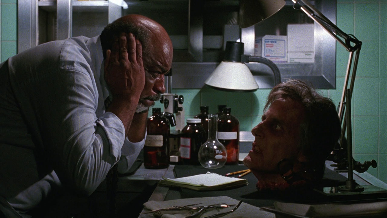 Curious Dr. Graves (Mel Stewart of Shirley Clarke’s Cool World) awakens the evil psychic head of Dr. Hill. As before, emotionally fragile Dan tries to have a love life (Fabiana Udenio of the second Austin Powers) and West accidentally kills someone (this time a cop!) whom he has to resurrect to get out of trouble. And sure as shit, they go the full Frankenstein, making a Bride out of stolen body parts, causing a love-triangle problem for Dan, who chooses life, so the new creature tears her own heart out.