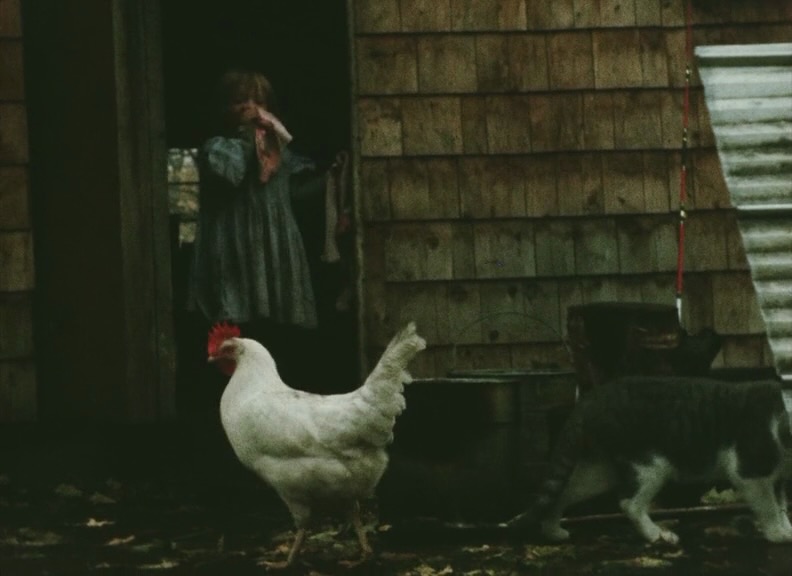Color fields, electro-tones, patterned text onscreen, with the main camera action being Canadian farmers. A barn raising is interrupted by color fields. A pig is killed, but then, pigs are portrayed as horrible disgusting creatures (I thought the one playing with the dogs was cute). It’s an ambitious title for an experimental re-edit of your home movies from some months at the cabin, but I’m not mad that I spent the time watching this, and at least it will always be filed alphabetically next to an oscar winner.