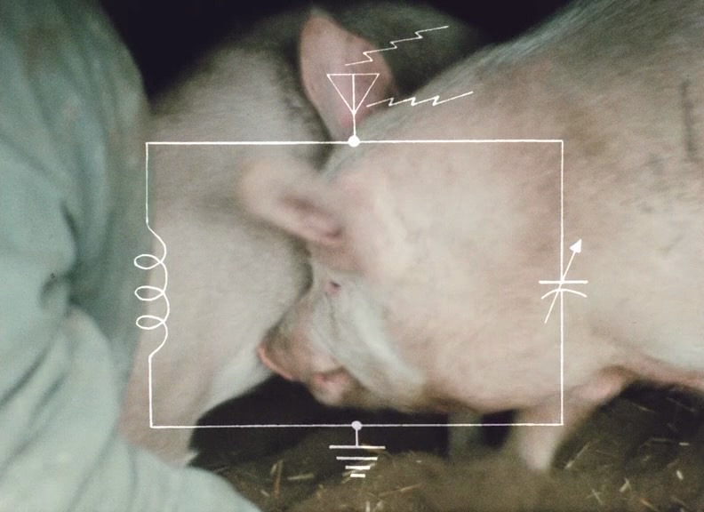 At various moments throughout the film we hear minimal, humming synth tones, which were added because Lock felt he heard such sounds coming from the images themselves … It’s an elegant manoeuvre that is matched by another interesting strategy: graphics (shapes, numbers, a circuit diagram) are overlaid atop images. Formally, these feel in line with works by other Canadian filmmakers like Joyce Wieland and R. Bruce Elder, and they call attention to the surface of the film plane, as if inviting us to view everything as a spectacle behind glass.