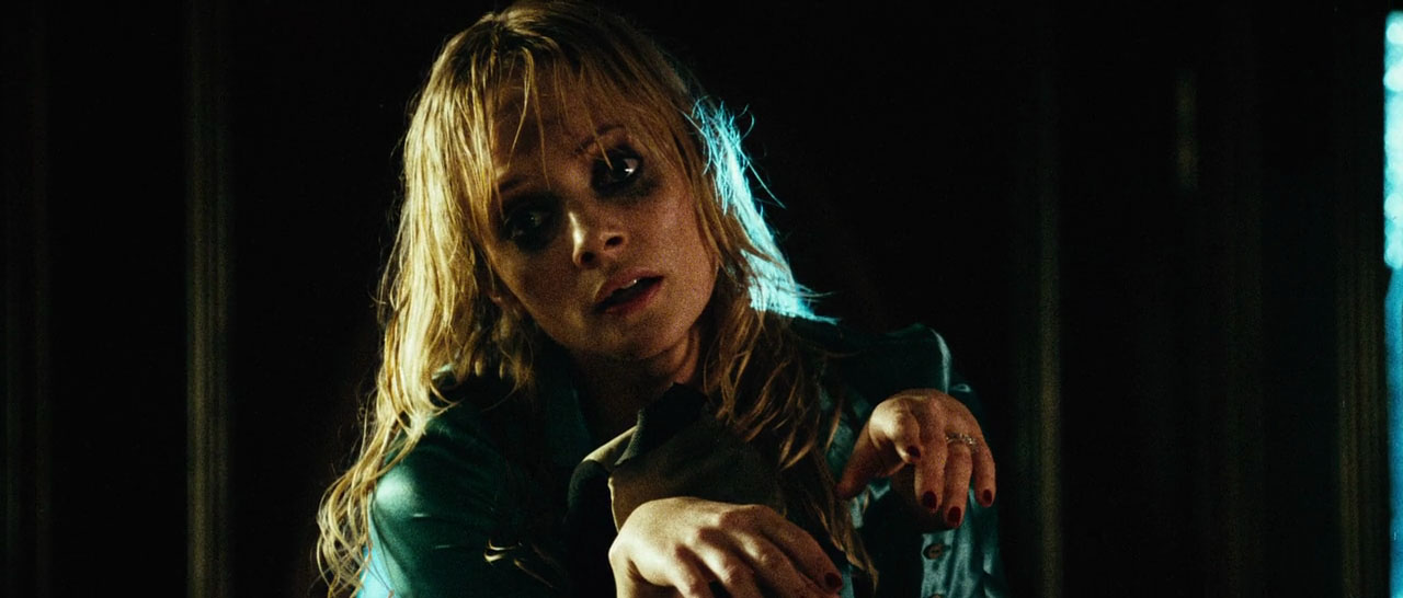 Watched this again over a couple days… the Grindhouse version with trailers and interstitial stuff, not the extended director cuts released separately. I’m usually a nut for director’s cuts and extended versions, which is why I keep re-buying The New World and Michael Mann movies, but for some reason I’m satisfied with the theatrical edits here – maybe because the two “missing reels” are the best jokes in the movie.