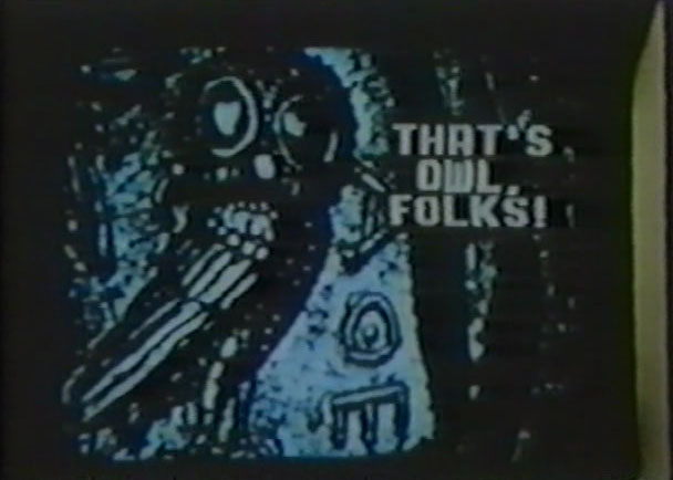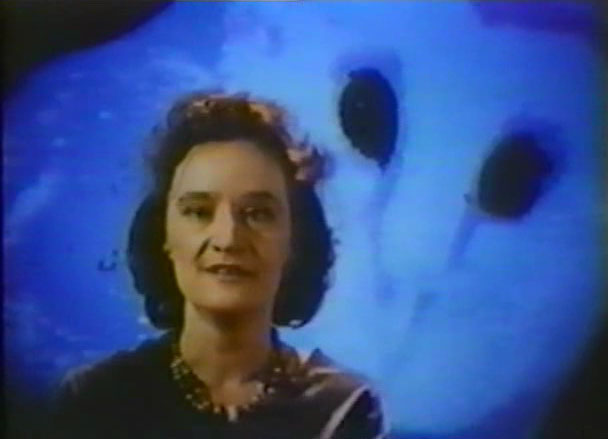 Marker hosts banquets across the world and interviews subjects one-on-one (in front of giant pictures of owls), discussing Greece. Mostly it’s school, like a PBS doc without the music or the constant zooming around ancient photographs. Hard to stay interested, since I had no real curiosity about Greek culture, only a curiosity about Chris Marker’s movies (in the credits he’s listed as “skipper” and producer Jean-Pierre Ramsay is listed as “long-distance calls”).