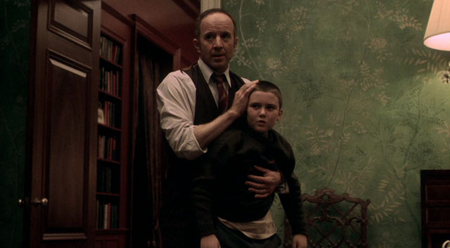 Hot-tempered rich guy Joseph (Danny “son of John” Huston) is to marry Kidman soon, so he doesn’t take well to the kid’s claims. He and gentle, logical Bob (must be someone’s brother, played by Arliss Howard: Cowboy in Full Metal Jacket) and Kidman’s pregnant sister Laura (Alison Elliott of Wings of the Dove) help her work with the kid (whose parents, completely at a loss, allow him to stay over unsupervised), trying to find holes in his story or understand his motives. I liked the movie very much, but the main problem I had was with its attempt to have it’s realism with its mysticism, sending first Nicole then Bob into a room to disprove the kid for two hours then show them bowled over by a couple correct anwers and elide whatever happens for the next hour and fifty-eight minutes, or making his parents total pushovers who stay away from Kidman’s house – always conveniently cutting to prolong the confusion, which contradicts the reality of all these suspicious adults who are supposed to be searching for the truth. If the movie isn’t going to take the approach of an airtight psychological mystery with a twist ending a la Shutter Island, I’d have preferred it head more towards the inexplicable Comedy of Innocence than straddle the line between them. But no matter, it’s an utterly enjoyable movie with awesome acting and unique enough filmmaking (shimmering, closeup-happy cinematography by Harris Savides: Zodiac, Elephant) to get me all excited.