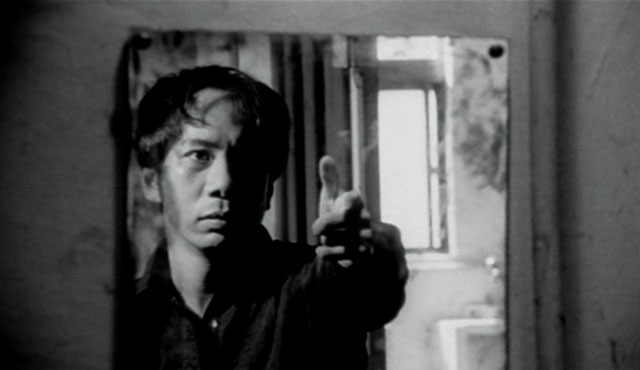 Businessman Goda (the director himself, also listed as writer, editor and cinematographer) becomes gun-obsessed after his wife shoots herself. They are illegal to buy, so he trolls the underground, then constructs his own gun out of custom-machined parts, and finally a girl offers a gun if he’ll marry her for immigration reasons. It’s a no-brainer for him, with his life in an obsessive downward spiral by then, and she’s never seen again in the movie.