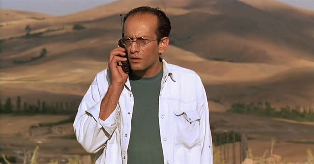 The story is elliptical, and the filmmaking reminds us of this, specifically by hiding a couple of main characters from the camera. There are only about ten speaking roles, and three of them are men who are never seen, always perversely hidden around a corner or down in a hole. Behzad (as IMDB calls him – can’t remember if anyone used his name in the film) arrives at a town in the hills with two companions (never seen), is met by his young guide Farzad. He’s here for a secret reason, asking lots of questions about an old woman confined to her home (also never seen). Everyone in town calls him Engineer, but we get no proof that he is or is not an engineer. He camps out, waiting for the old woman to die, gets a phone call every few days to check on his progress, during which he has to run to his car and drive to the top of the mountain for better cell reception.