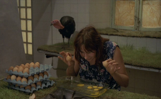 I think the title is real-estate shorthand for “seven bedrooms, kitchen and bath.” Shot in a former hospice during an exhibition created by Louis Bec, who played the older father. So I’m not sure which of the visual ideas came from Bec and which from Varda, but it’s a remarkable little film. Unseen realtor is showing this property to unseen doctor, the doctor moves in, starts a (large) family which grows up fast. They go through a couple maids and their oldest daughter gets a boyfriend and rebels against her father. Older yet, and the father has died. The rooms go from bare to slightly dressed to crazy – the bathroom totally covered in feathers at one point. Characters speak through each other, repeating phrases like in Marienbad.