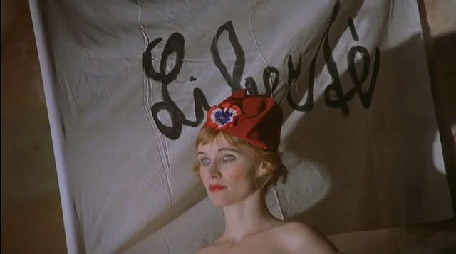 Pavel was visiting his mother in an asylum – was he staying there too? Anyway, he takes up with the Marquis, who self-treats his fear of being buried alive by faking death regularly and being buried alive (with the tools to escape). He also holds sacreligious orgies in the basement, and all of this makes Pavel nervous. The Marquis takes him to Dr. Murlloppe, who runs an asylum where the patients are allowed to do whatever they please (feathers fly, a nude woman is a paint-therapy canvas). Pavel doesn’t fit in, vows to save Murlloppe’s “daughter” (Marquis warns that she’s a lying hysteric nympho). He frees the “real” doctors, tarred and feathered and imprisoned in the cellar, and they take charge using their methods of cure-via-torture, holding Pavel as a patient.