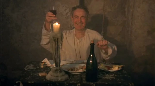 For the first time Svankmajer makes real use of his actors as actors, not merely as self-operating meat puppets. In particular, Jan Triska as the Marquis (de Sade) brings a malevolence, a twinkle, and a vulnerable humanity to this film which hasn’t been seen in the Czech alchemist’s movies before. . . unlike the previous features which had used actors largely to occupy screen space where puppets would have been too expensive and time-consuming, Lunacy revels in the possibilities of unpredictable humanity let loose in an artist’s cinematic canvas.