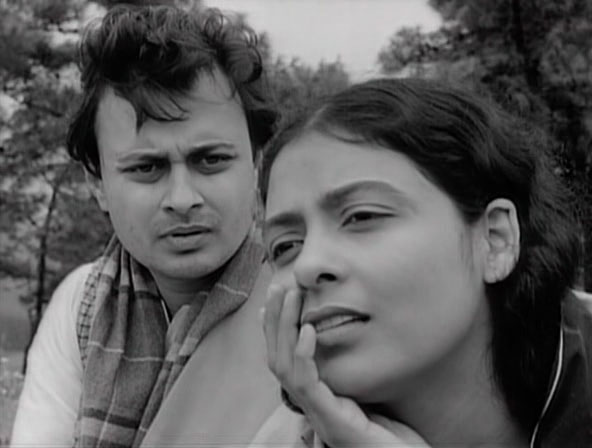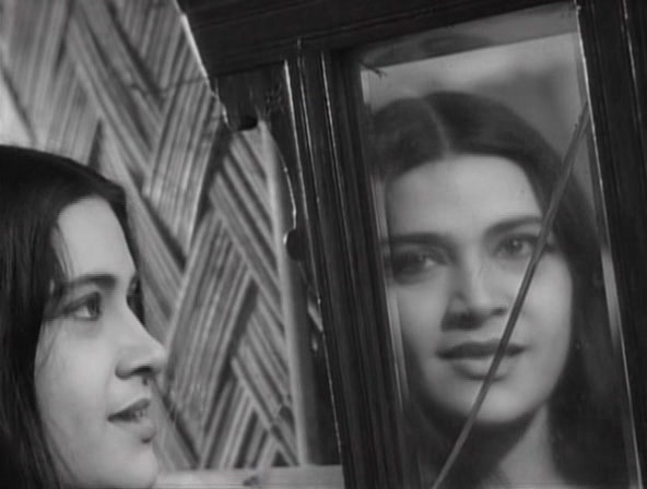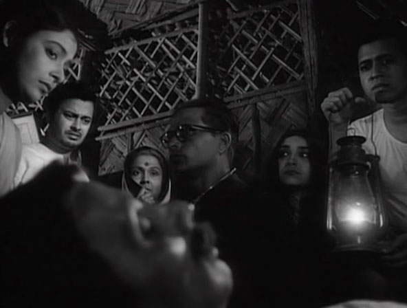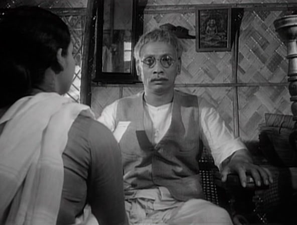A family picture: Nita is our beautiful protagonist in love with Sanat, brother Montu is in college, brother Shankar (Anil Chatterjee, the goofy groom traveling with his uncle near the start of Ajantrik) sits under trees singing all day hoping to be famous, and younger sister Gita does nothing much. The family’s father is a schoolteacher, and mother sits around meanly bitching at everybody.