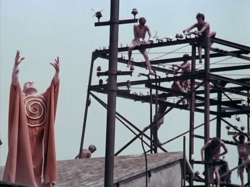 This one is more masculine than Sileni, less interested in the daughter/prisoner character Eugenie than in Gaston and Maillard (Claudio Brook – Simon of the Desert himself), but really it doesn’t seem too interested in any of them. There are some half-hearted pursuits and mysteries, and even the tarred/feathered “real doctors” in the basement scenes have little explanation (and nothing like the terribly doomed finale of Svankmajer’s version). The “hero” never does a thing; the prisoners escape on their own. It’s a series of crazy scenes, signifying nothing.
