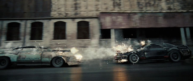 In a dystopian future, racing legend Jason Statham is set up for killing his perfect wife, and sent to a post-reality-TV prison, where he can earn his freedom by winning a few weapon-equipped car races which are, of course, rigged by the authorities (Joan Allen). He takes the place of a masked driver called Frankenstein (role reprised from the original by David Carradine), gets a mechanic (Ian McShane), a saboteur-spy sidekick (Natalie Martinez) and a rival (Tyrese Gibson, in the Sylvester Stallone role). After some ‘splosiony car races, Statham avenges his wife by killing mohawked driver Max Ryan and Pryzbylewski-looking guard Jason Clarke, then secretly teams up with Tyrese, easily breaking out of prison by shooting the walls with their missile-equipped cars, driving away to a Shawshank-esque incognito freedom.