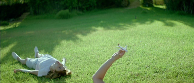 Odd movie, weirdly off-center compositions with tops cut off. Opens with three siblings, insulated in a suburban house their entire lives, being taught fake vocabulary words (“a sea is a leather armchair with wooden arms”). Dad brings a female security guard called Christina from town to have dispassionate sex with the son. The girls kill time by playing fun games, like testing homemade anesthetics (“the one who wakes up first will be the winner”).