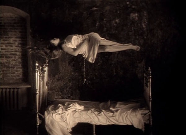 4. b/w, woman wet hair vamping like The Ring monster, the house crumbles around her like a Low video, older woman appears in mirror reflection.