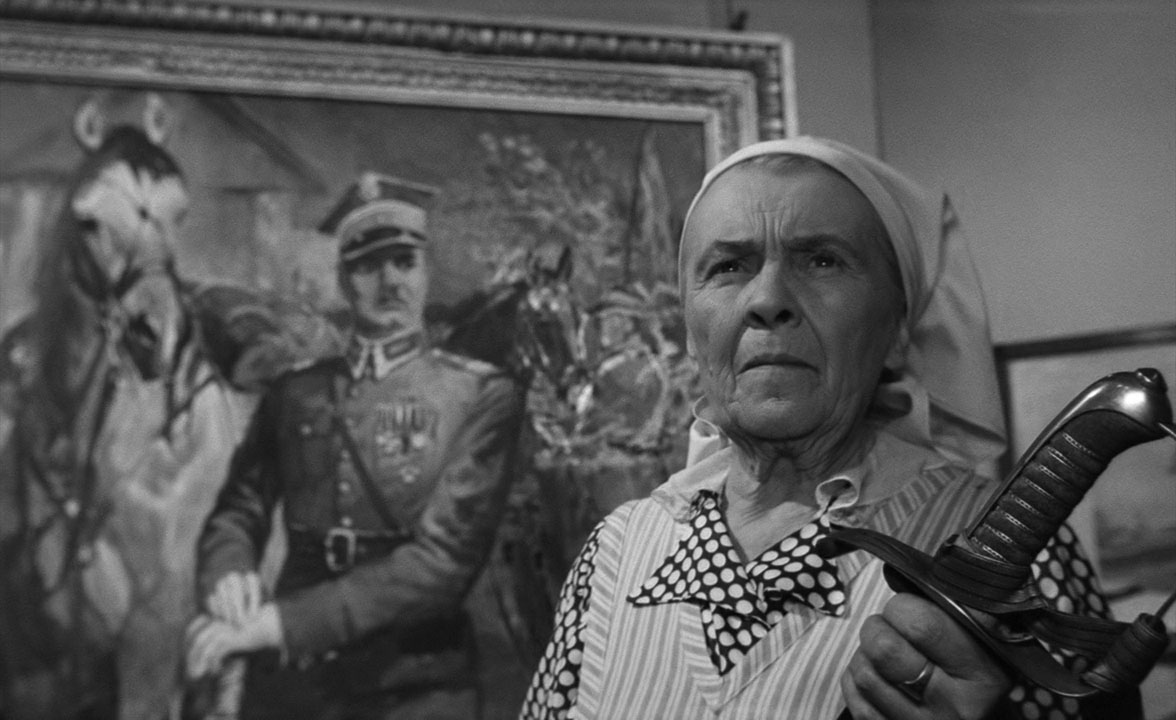 Maciek (Zbigniew Cybulski, the Polish James Dean in the aftermath of this film, later star of The Saragossa Manuscript) takes orders from his more serious friend Andrzej, who works for the bald Major, who works for some vague remaining idea of the resistance army. Maciek, then, is far removed from any real authority, feels more like a freelance gangster than one of the desperate young soldiers of the previous films. Further complicating the alliances, Maciek’s Russian target shows up at his sister-in-law’s house where the Major is plotting to kill him in the next room. The movie goes out of its way to humanize the Russian – and to give Maciek a way out, as he meets a girl named Krystyna and contemplates leaving the dying resistance behind. Eventually Maciek does get his man, and is immediately hunted down and shot, dying like a dog in the street.