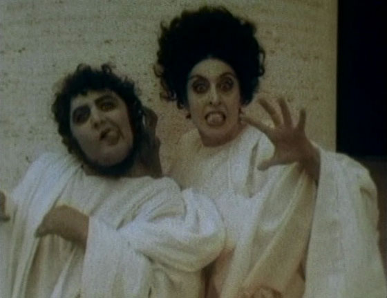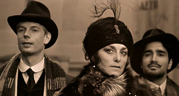 Giulietta Masina introduces the “man with the sack” sequence from Nights of Cabiria, which at this point had never been seen, claiming it’s based on a true story. Some Satyricon, then we get a frenetic sepia-toned ancient-Rome silent short watched by a screaming audience (including a raptly attentive young Fellini).