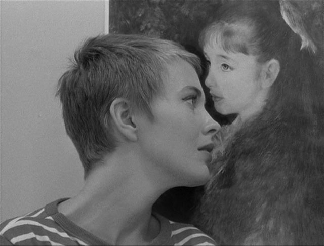 A girl wakes up and the whole town is flooded from melting snow. She meets a guy (a young Jean-Claude Brialy) who offers to drive her to Paris before nightfall. Music is weird – gentle flute or horns punctuated with bursts of percussion. Ooh, a Duchess of Langeais reference… in fact there are a ton of references in her quick monologue narration, which ends with spoken credits.