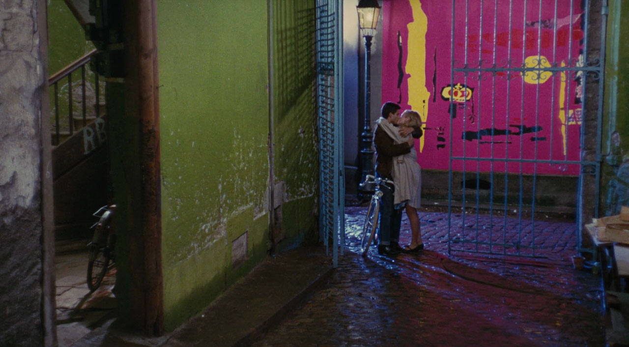 Demy stitches together an Interconnected Universe here, sending Lola back to France at the end, reporting that her Sailor Frankie has died in Vietnam. Lola speaks of an ex who left her for a French gambler named Jackie (Bay of Angels) and we’ve already seen her boy Roland marrying Catherine Deneuve in Umbrellas. Unknown whether Gary’s tooling around town in the limited time before he has to report for duty has Cleo from 5 to 7 in mind, or if it’s more a reference to Sailor Gene Kelly on shore leave.