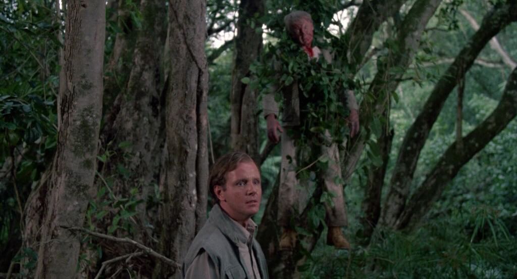 Awesome move setting the story on an army base, a location where everybody is trained to act like a pod person anyhow. R. Lee Ermey is looking good with his little mustache as the local general. Young Marti (Gabrielle Anwar of Flying Virus and iMurders) reluctantly moves onto the base with her boring dad (he’s so boring) Terry Kinney (founding member of Chicago’s Steppenwolf Theater), evil stepmother Meg Tilly (Psycho II) and observant little stepbrother. Marti immediately stars hanging out with a couple bad influences: hot, emotionless chopper pilot Tim (Billy Wirth of The Lost Boys) and general’s daughter Jen (Christine Elise of Child’s Play 2). Once the snatching starts, Tim’s post-traumatic stress disorder proves extremely useful in blending in with the aliens. Particularly creepy was the wide-mouthed pointing scream the baddies used as an alarm once the base had been mostly snatched.