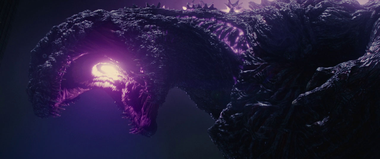 Back to the giant monster movie at hand, the thing that comes onshore is… not Godzilla? I thought it might be a monster that G ends up fighting, but after struggling through the city and splashing blood everywhere, it collapses then suddenly evolves into the G we all know. Every time it stops and then rises again, it’s more powerful with new abilities – the fin-glowing, fire-breathing, purple-energy-releasing sequence is especially impressive.