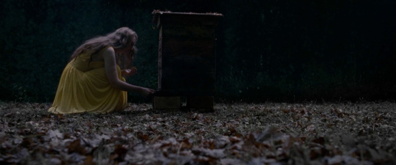 Driving, trees rush overhead, flash glimpses of a deer, of children in bed, the lighting and music both more blue than before. Wow, the kids are dreaming a water bird, flapping and preening, filmed in zoomed-in fragments, or all at once but defocused.