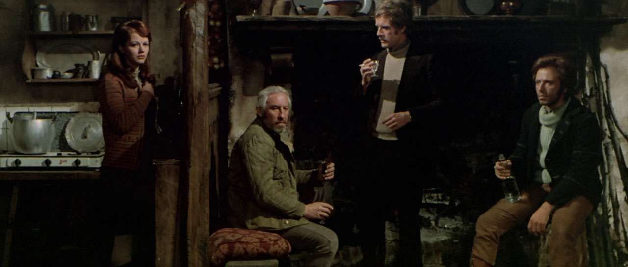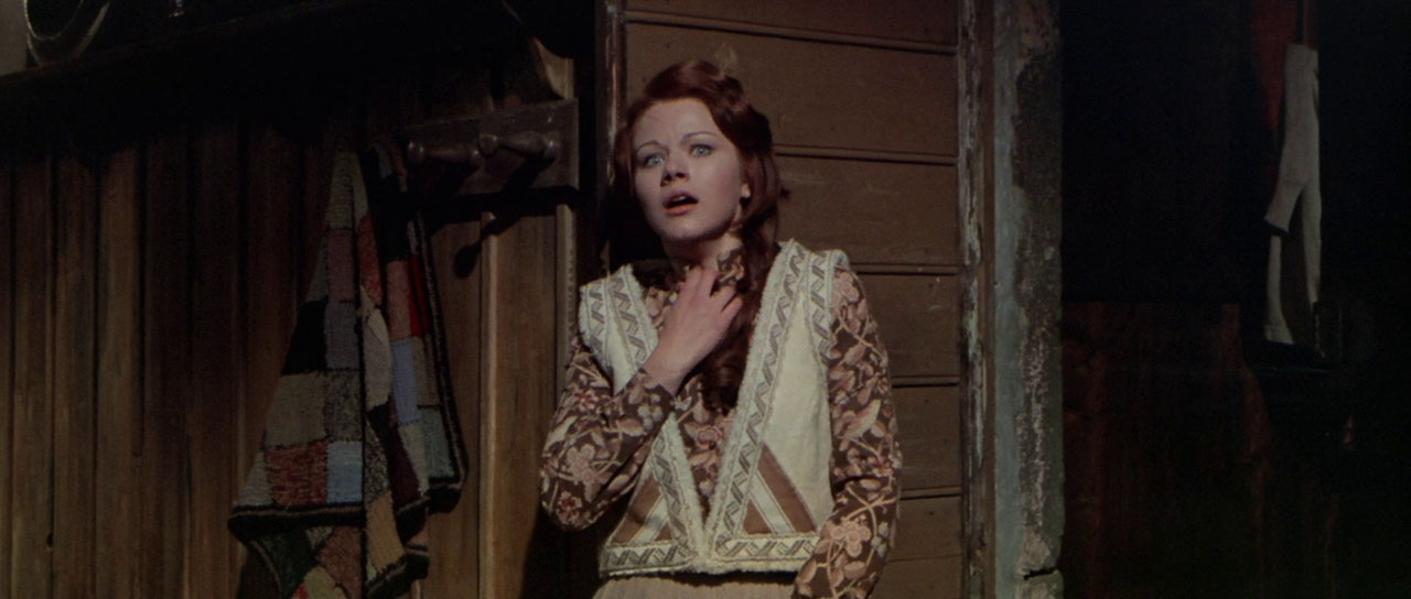 Until the car can be fixed, Nicola is stuck with the seven remaining family members, who are worriedly whispering about ending a curse, so he gets gradually clued in. It’s not long before the hot daughter Sdenka falls in love with the stranger, and also the dead man’s brother goes out to fight the witch in the woods, returns cursed, and after being stabbed in the heart his face melts nice and slowly, and the movie just chills out and watches it go.